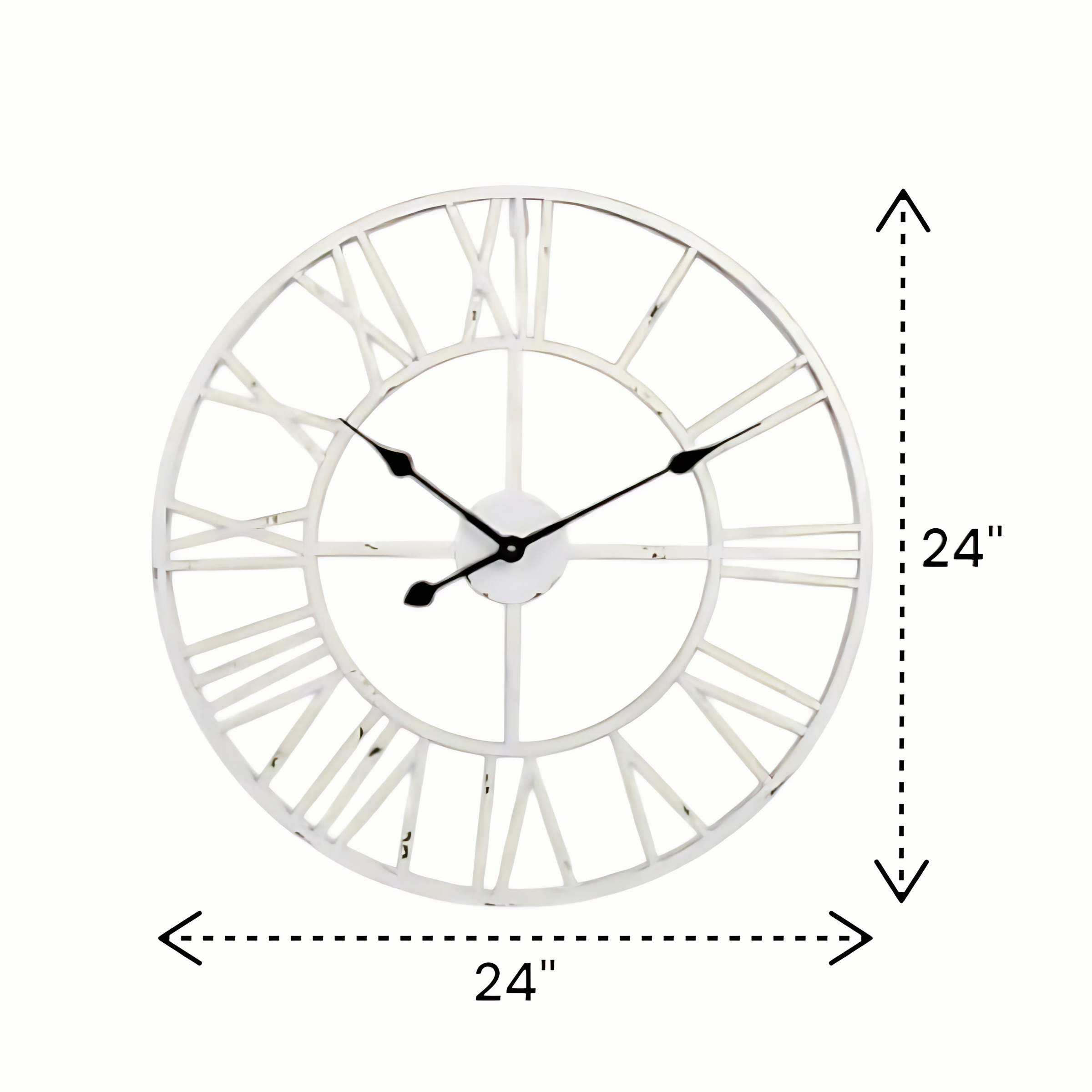 This wall clock features a pristine white face, offering a clean and versatile backdrop that effortlessly complements any interior decor. Dominating its design are elegant Roman numerals, which not only provide clear readability but also evoke a sense of historical grandeur and refined taste. The stark contrast of the numerals against the white background creates a striking yet understated visual appeal.