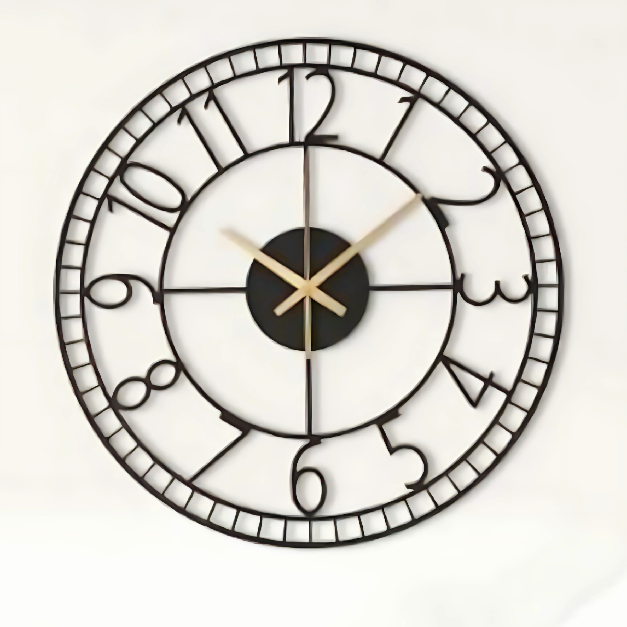 This unique wall clock strips away the superfluous, showcasing a sleek, open-frame design that reveals the wall behind it, creating a dynamic interplay of light and shadow. Crafted from durable metal with a profound matte black finish, its skeletal structure offers a contemporary edge that seamlessly integrates into modern, industrial, or loft-style interiors. The absence of a traditional clock face emphasizes its artistic form and the elegant movement of its hands.