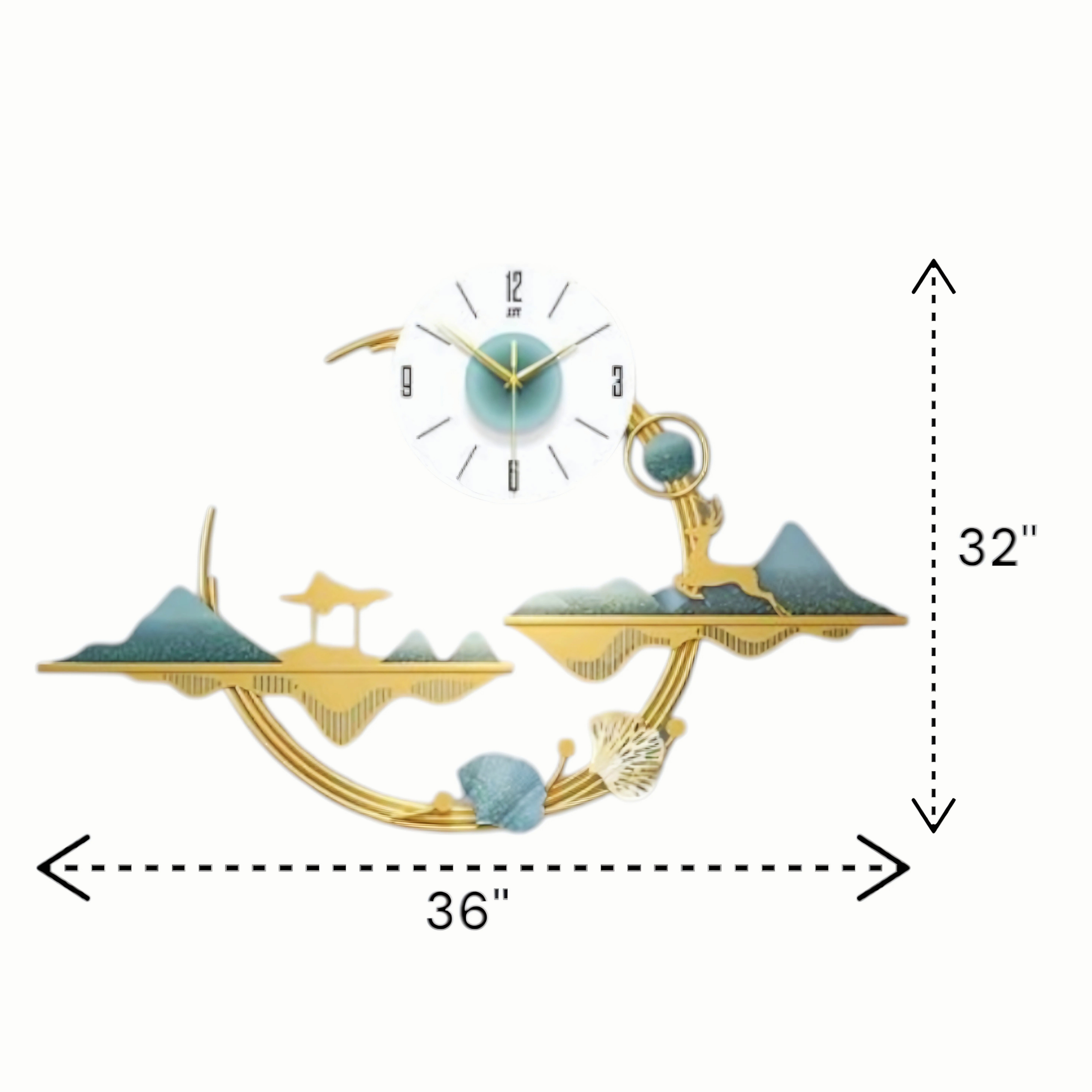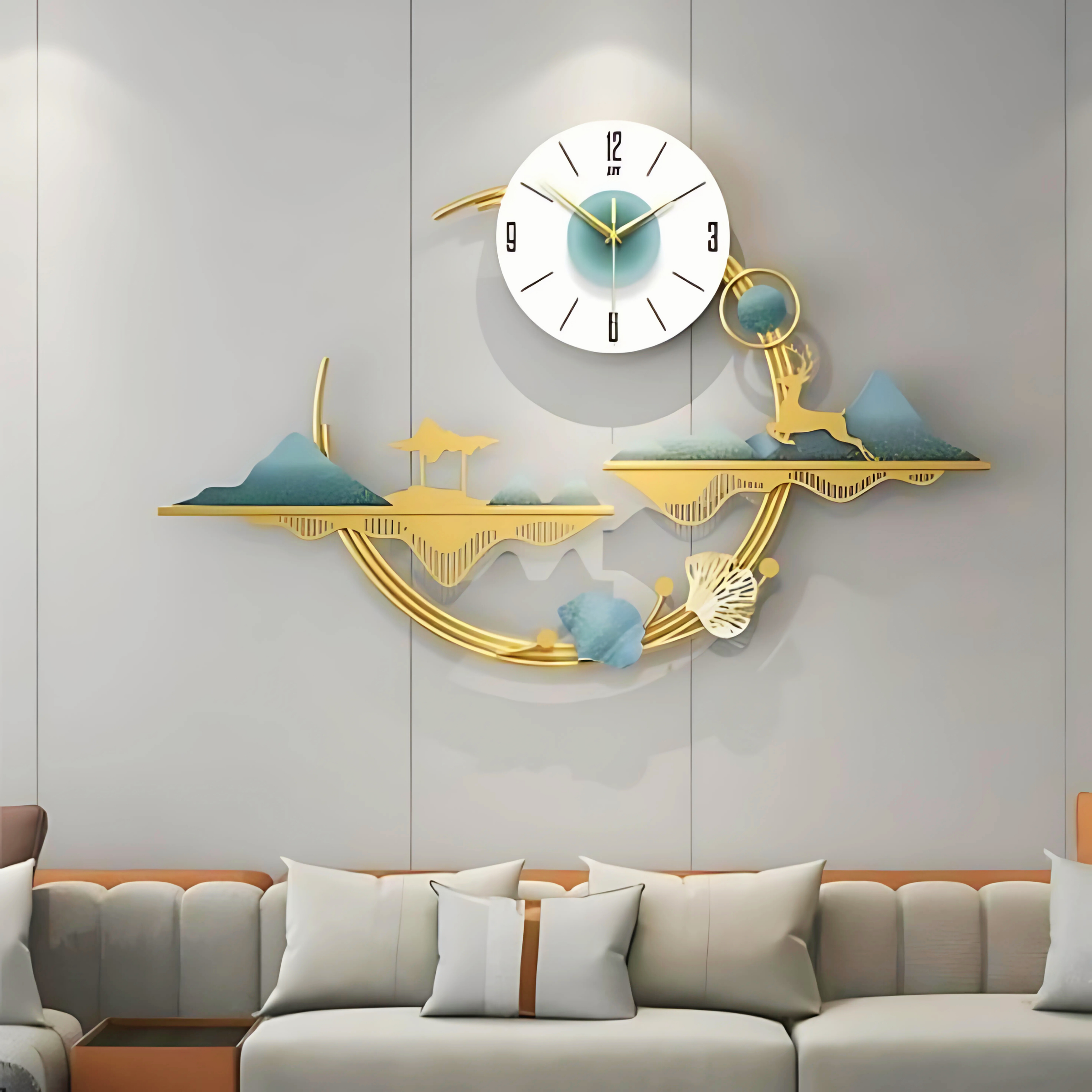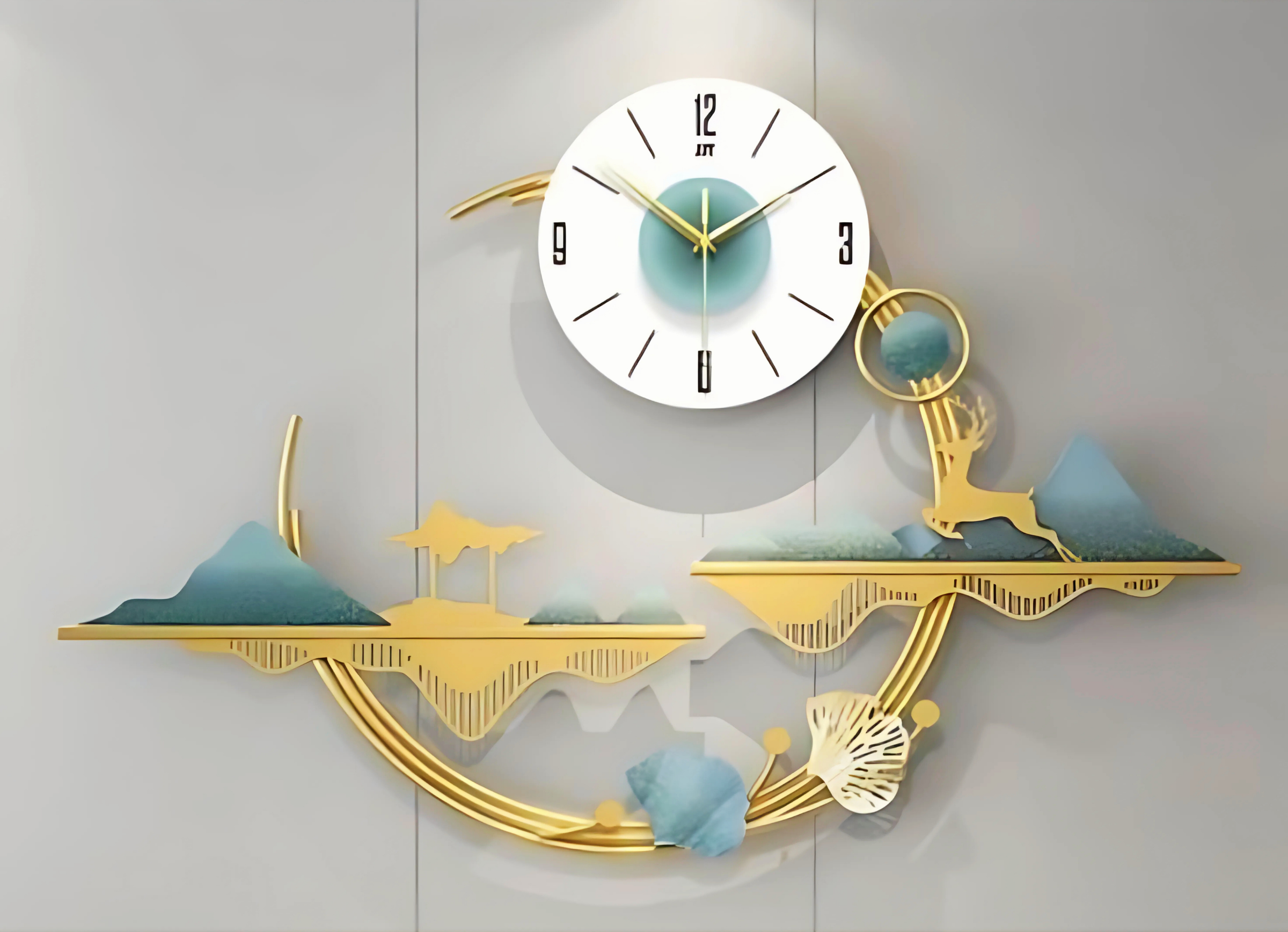 This unique wall clock features an artistic design inspired by the raw, captivating essence of wild nature – whether through dynamic organic forms, intricate animal motifs, or abstract patterns that evoke landscapes. The design is brought to life by a harmonious blend of deep, expansive blues and radiant golden accents, creating a visually rich and luxurious aesthetic that speaks of untamed elegance and timeless beauty.